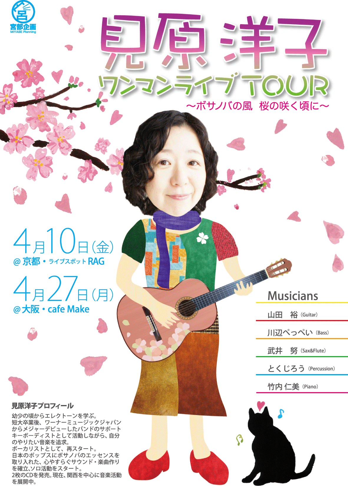 [メ] 見原洋子(Vo)、山田裕(G)、川辺ぺっぺい(B)、武井努(Sax,Fl)、とくじろう(Per)、竹内仁美(P)