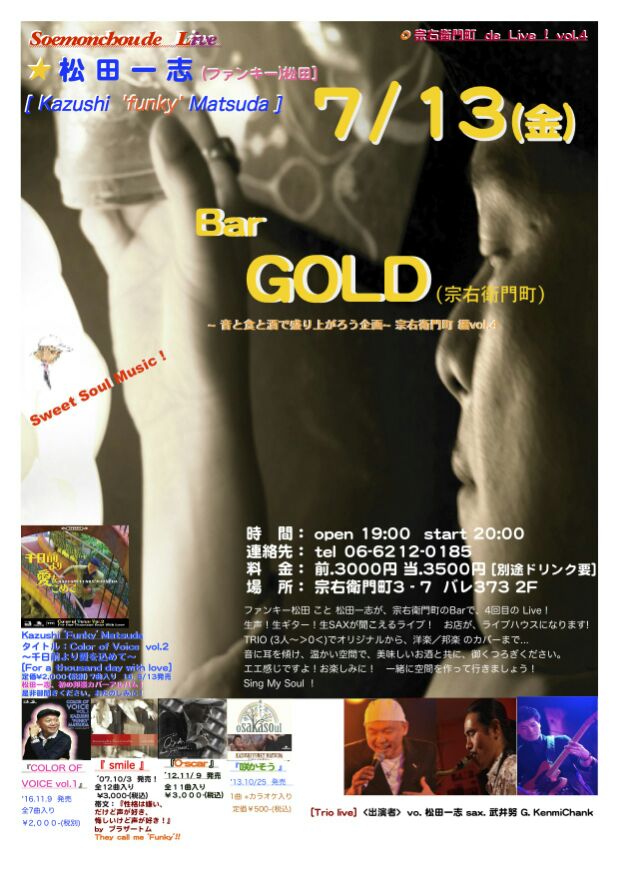 [メ] 松田一志(Vo)、KenmiChank(Gt)、武井努(Sax)