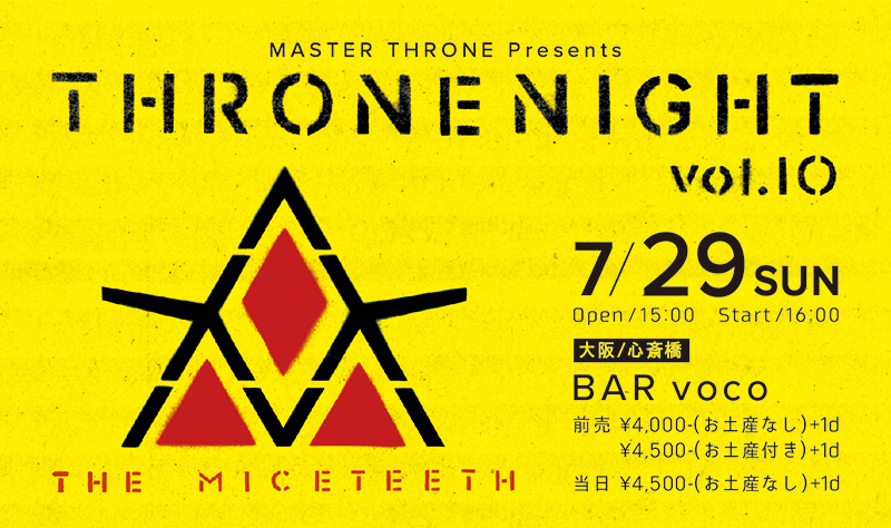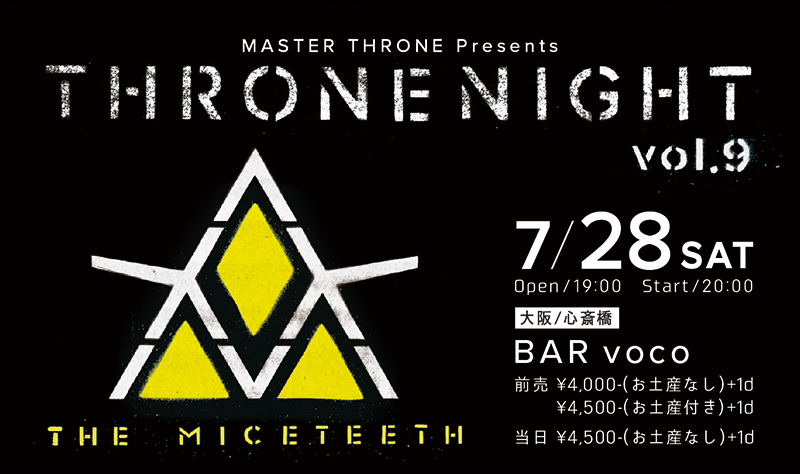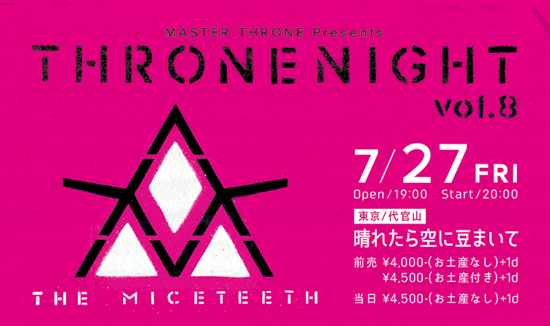 *お土産は『完全限定生産のカセットテープ』!THRONE NIGHTのために製作、新曲未発表曲含む未発売曲収録のスペシャル・レア・アイテム!ご予約時に「お土産希望」の旨明記。もしくはイープラスで券種「その他1」を選択してください。既に「お土産なし」でご予約/ご購入済みのお客様も+500円にて切り替え可能です。